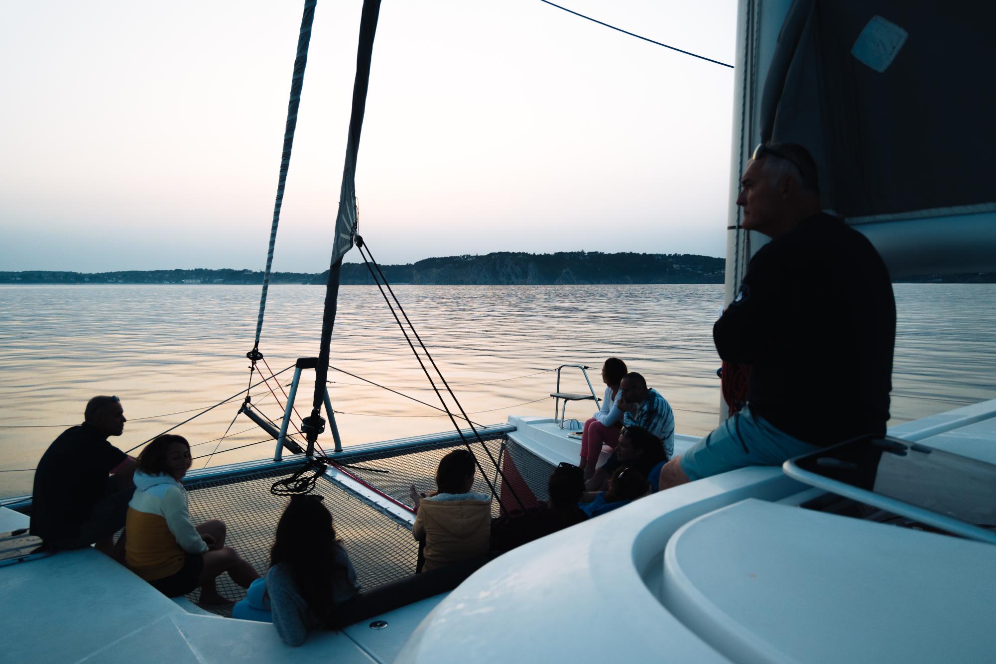 Une navigation en fin de journée pour profiter des lumières du soir sur la baie avec un retour au coucher du soleil.